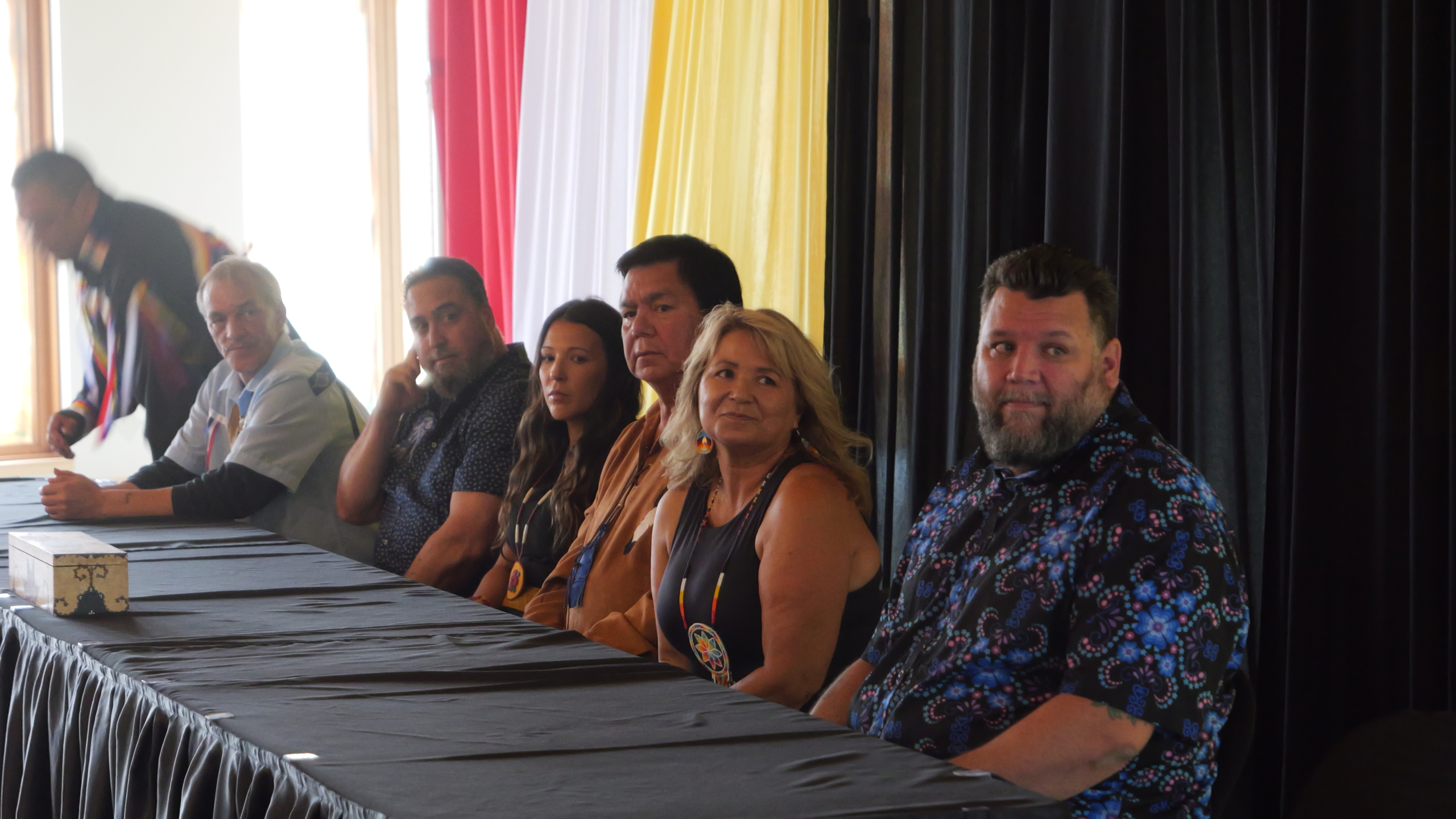Councilors Candace Narvie, Chris George, Daniel Caplin, Karen Narvie, Ron Simonson & Tony Miller, as well as Chief Jake Caplin, were sworn in by community member and commissioner of oaths, Shelley Balfour-Coulombe. Councilor Everett Martin could not attend the ceremony.