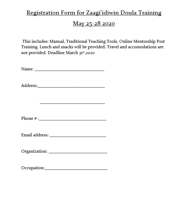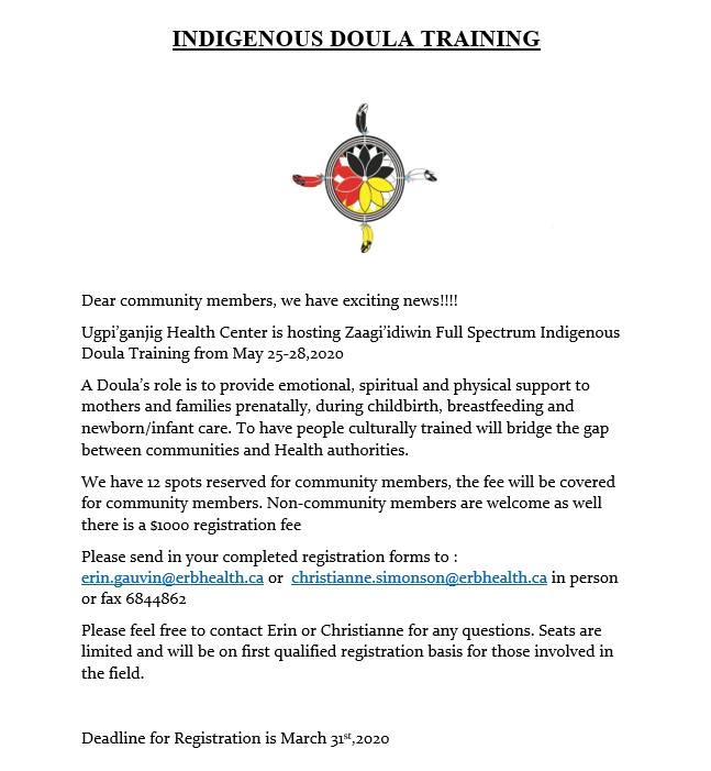 Ugpi’ganjig Health Center is hosting Zaagi’idiwin Full Spectrum Indigenous Doula Training from May 25-28,2020