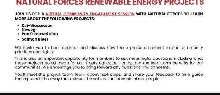 This is also an important opportunity for members to ask meaningful questions, including what these projects could mean for our Treaty rights, our lands, and the long-term benefits for our communities. We encourage you to bring forward any questions and concerns.
