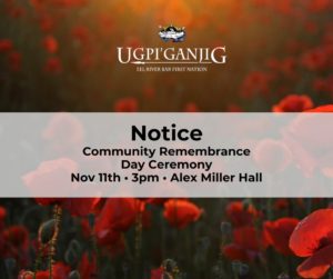 Community Remembrance Day CeremonyNov 11th • 3pm • Alex Miller Hall A light supper will be served.