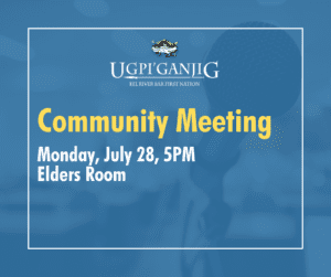 📣 Community Meeting – July 28 Community members of Ugpi'ganjig First Nation are invited to attend an upcoming community meeting. 🗓️ July 28 🕔 5:00 PM 📍 Elders Room A sincere thank you to all who attended our previous meeting! Your involvement makes a difference. Your voice matters! Join us to stay engaged, informed, and […]