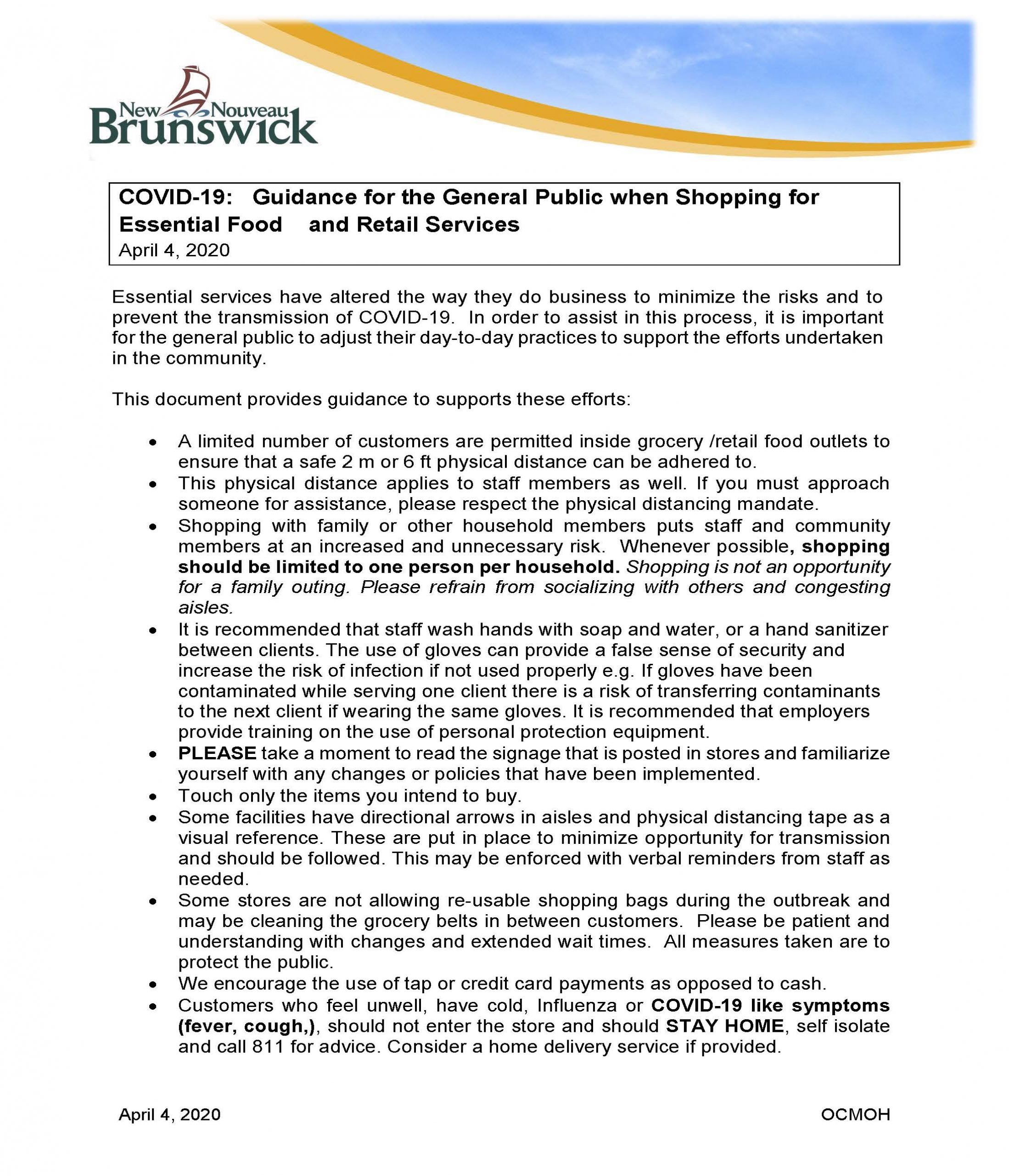 COVID-19: Guidance for the General Public when Shopping for Essential Food and Retail Services