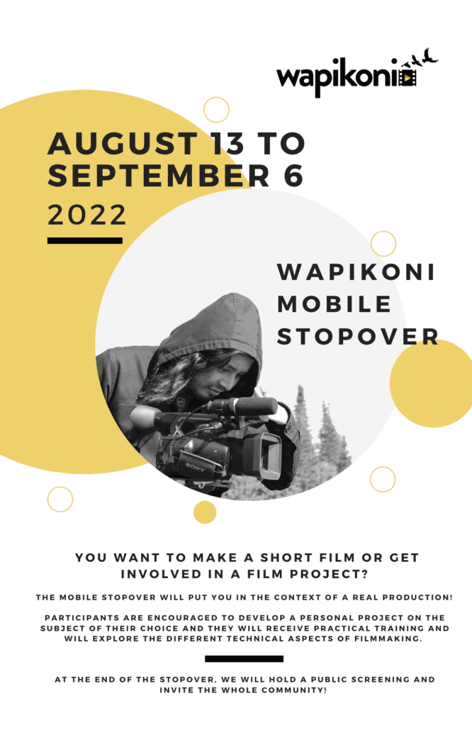 We’re gauging interest from community members in having Wapikoni Mobile set up from August 13 – to September 6, 2022.
